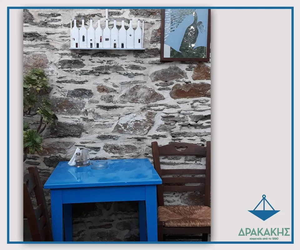 Το καφενείο του «Δρακάκη», ένα από τα παλιότερα του νησιού, λειτουργεί από παλιά στην καρδιά της διασκέδασης της Απολλωνίας, στο εμπορικό πλακόστρωτο κεντρικό σοκάκι.