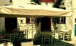 Μέσα σε μια κινηματογραφική κυκλαδίτικη πλατεία απολαύστε τα παπούδια με άνηθο και κρεμμυδάκι, την αντζουροσαλάτα με γιαούρτι και γλυκάδι, τη χωριάτικη του Σάμπλου με κάπαρη, κρίταμα και χαμάδες, την κιμωλιάτικη παξιμαδοσαλάτα με φρέσκια και λιαστή ντομάτα, κάπαρη και τυρί ξινό, τους ζυγουροκεφτέδες, τη λαδένια, την κολοκυθένια, τη μανούρα σαγανάκι με θρούμπι, το κατσικάκι στη γάστρα, τη σταβλίσια μπριζόλα αρωματισμένη με σχοινόκοκο και διάφορα άλλα τοπικά πιάτα.