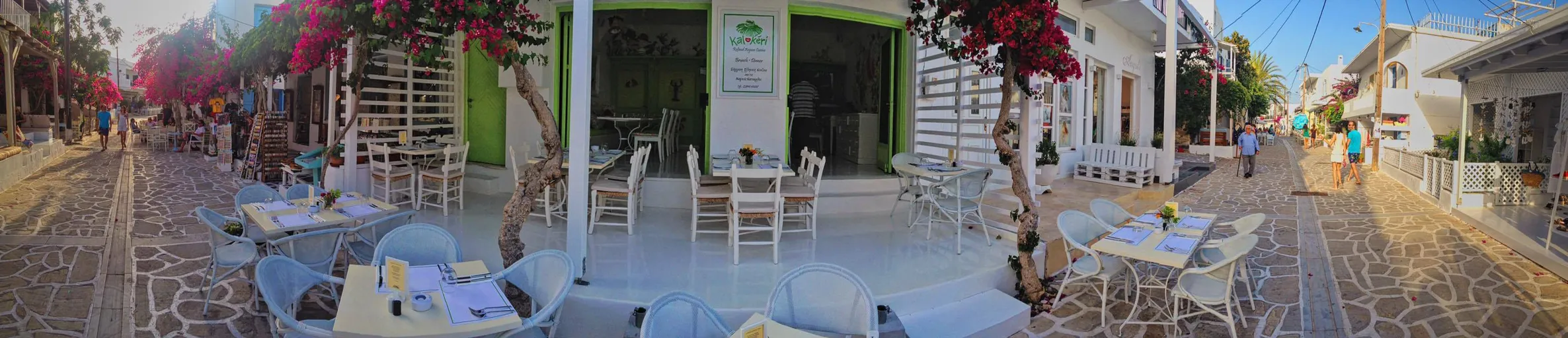 Εδώ στο Kalokéri, στον κεντρικό πεζόδρομο της Αντιπάρου, η βασική κουζινική γραμμή μας είναι χρήση αιγαιοπελαγίτικων πρώτων υλών και συνταγών της κυκλαδίτικης παράδοσης με μικρές παραλλαγές.