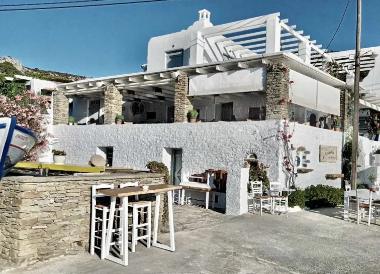 Από το 1976 μέχρι και σήμερα προσφέρει αυθεντική, ποιοτική κυκλαδίτικη κουζίνα με έμφαση στα τοπικά προϊόντα, στα φρέσκα θαλασσινά των μικρών Κυκλάδων και σε μια επιλεγμένη κάβα κρασιών από τον ελληνικό αμπελώνα. Γευτείτε την αυθεντική αστακομακαρονάδα του Νικόλα που μαγείρεψε για πρώτη φορά στις Κυκλάδες το 1978 στο μικρό τότε ταβερνάκι του, τις ολόφρεσκες σαλάτες και τα ζαρζαβατικά από το περιβόλι του, τα μαγειρευτά, τα χειροποίητα πιττάκια με ξυνοτύρι, την μεγάλη και καθημερινή ποικιλία αριών και θαλασσινών που δεν μπορεί να περιγράφει σε μια παράγραφο.