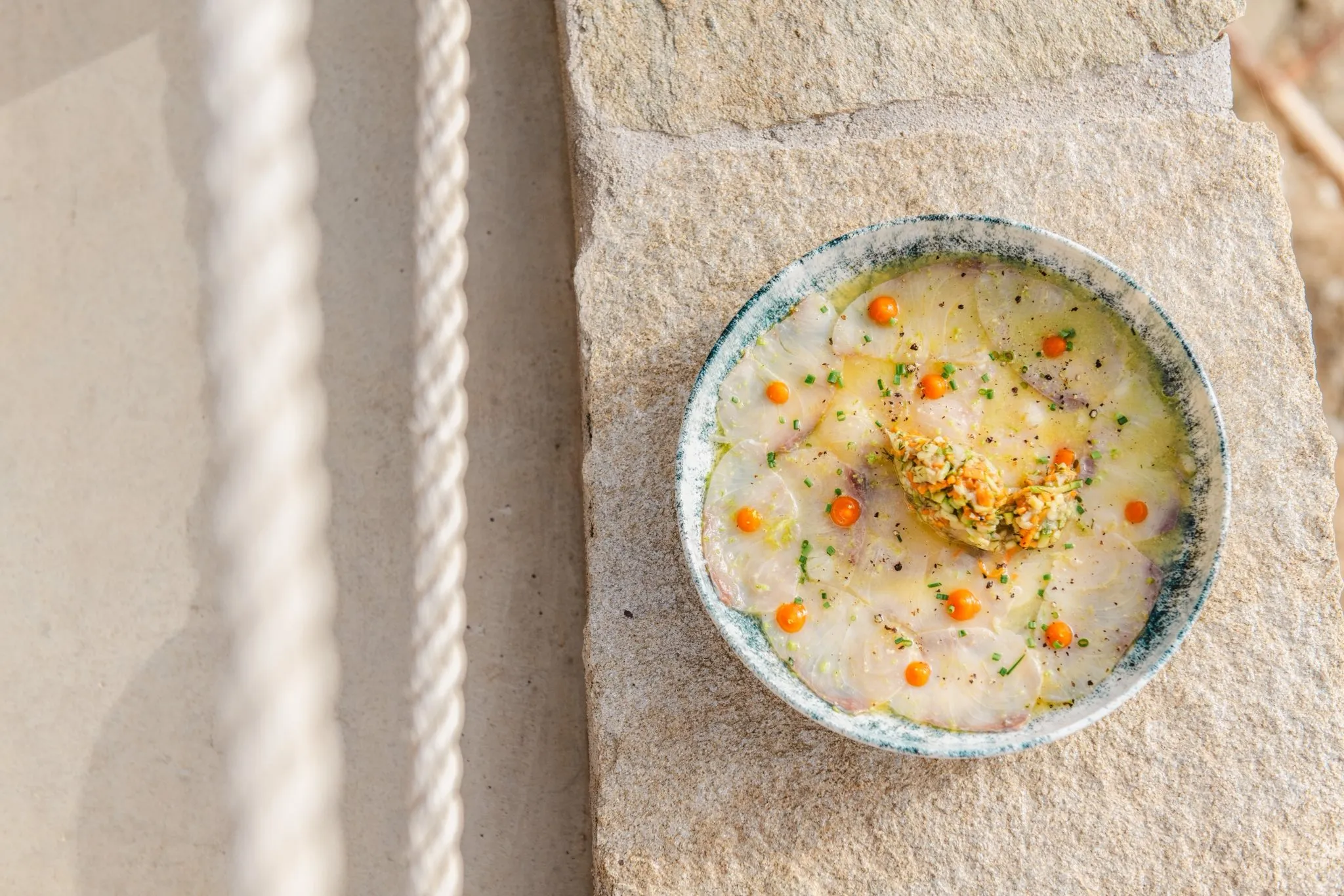 Σε κάθε μακρινό ταξίδι όμως χρειάζονται και οι κατάλληλες προμήθειες! Η μητέρα μου από την οποία δέχτηκα τα πρώτα γαστρονομικά μου ερεθίσματα, με έμαθε πως το μυστικό της γεύσης βρίσκεται –πέρα από την αγάπη και το μεράκι για το μαγείρεμα- στις πρώτες ύλες. Για να μπορέσω λοιπόν να μεταφέρω πιστότερα τις παραδοσιακές συνταγές και γεύσεις του τόπου μου χρησιμοποιώ, σχεδόν εξολοκλήρου, προϊόντα της γης και της θάλασσας του τόπου μου, συνεργαζόμενος με καλλιεργητές, κτηνοτρόφους και ψαράδες της Τήνου, τους οποίους αταλάντευτα και αδιαπραγμάτευτα θεωρώ τόσο πρεσβευτές της τοπικής γευστικής εμπειρίας και κουλτούρας του τόπου, όσο και συνταξιδιώτες μου στο γευστικό περίπλου του νησιού μας.