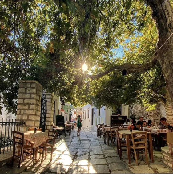 Ο χώρος μας βρίσκεται στο κέντρο του πλακόστρωτου καλντεριμιού, στα θεμέλια του Ενετικού πύργου του “Ζευγώλη”, που χτίστηκε τον 17ο αιώνα. Το φαγητό μας μπορείτε να το απολαύσετε στην υπέροχη βεράντα μας με θέα τα βουνά ή κάτω απ’ την δροσερή σκιά του Πλάτανου, ο οποίος στέκεται εκεί για πάνω από 60 χρόνια.
