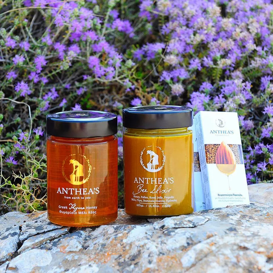 H Anthea’s είναι μια οικογενειακή επιχείρηση που εδρεύει στο όμορφο κυκλαδίτικο νησί της Κέας. Όλα τα φυσικά προϊόντα της Anthea’s προέρχονται από πρακτικές και καλλιέργειες που γίνονται σύμφωνα με τους νόμους της φύσης, με αγάπη και σεβασμό προς αυτήν! Τα βιολογικά μας φραγκόσυκα και αμύγδαλα που βρίσκονται στα κτήματα μας μεγαλώνουν φυσικά, χωρίς την χρήση φαρμάκων ή ορμονών. Το έδαφος και τα νερά έχουν εξεταστεί προσεκτικά, είναι ελευθέρα από χημικά κατάλοιπα, και δεν αποτελούν κίνδυνο μόλυνσης για τις καλλιέργειες μας. Το αγνό ακατέργαστο θυμαρίσιο μέλι μας παράγεται στην περιοχή Σπαθί, που ήταν από την αρχαιότητα, ένα από τα κέντρα μελισσοκομίας στο Αιγαίο! Με σεβασμό στο πλούσιο οικοσύστημα της νήσου και στους εποχιακούς κύκλους της φύσης, παρακολουθούμε τα μελίσσια μας καθ’ όλη την διάρκεια του χρόνου. Παράγουμε και συλλέγουμε το μέλι μας με υπευθυνότητα και συνεχή ενημέρωση στις πρακτικές της ορθής οικολογικής μελισσοκομίας, χωρίς την χρήση φαρμάκων ή βλαβερών ουσιών. Κατευθείαν, με άθερμη επεξεργασία, το μέλι εξάγεται χωρίς περαιτέρω επεξεργασία και τυποποιείται στη σύγχρονη πιστοποιημένη με ISO 22000:2005 μελισσοκομική μας μονάδα, εφαρμόζοντας τους αυστηρότερους κανόνες ασφάλειας και υγιεινής. Έτσι μπορούμε να εγγυηθούμε την άριστη ποιότητα του, που εμπεριέχει όλα τα αρώματα του θυμαριού, μαζί με τις ανεκτίμητες θεραπευτικές και θρεπτικές ιδιότητες του μέχρι την τελευταία σταγόνα του βάζου!