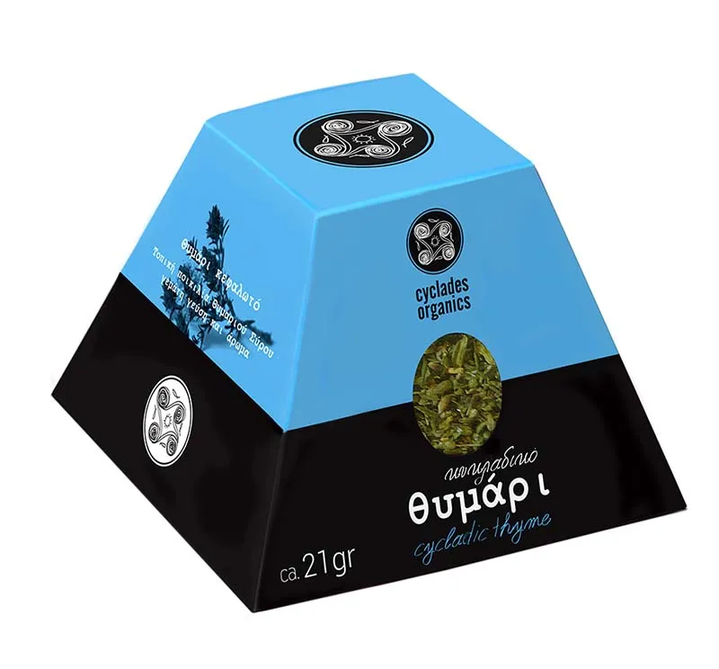 Αποξηραμένο κυκλαδικό θυμάρι - Thymus Capitatus 21 γρ (συσκευασία), ελληνικό προϊόν βιολογικής γεωργίας.