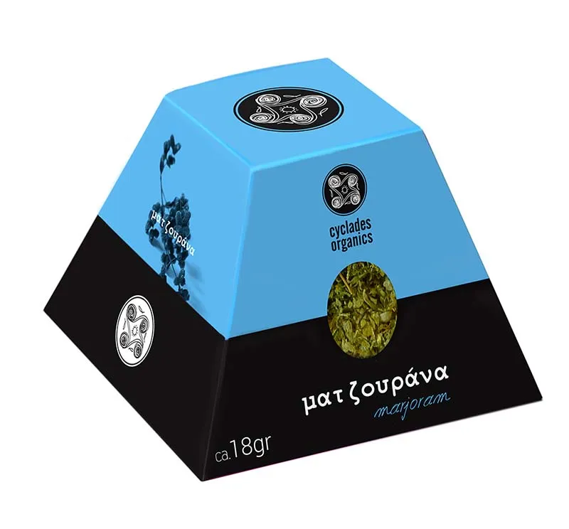 Αποξηραμένη ματζουράνα - Oreganum Majorana 18 γρ (συσκευασία), ελληνικό προϊόν βιολογικής γεωργίας.