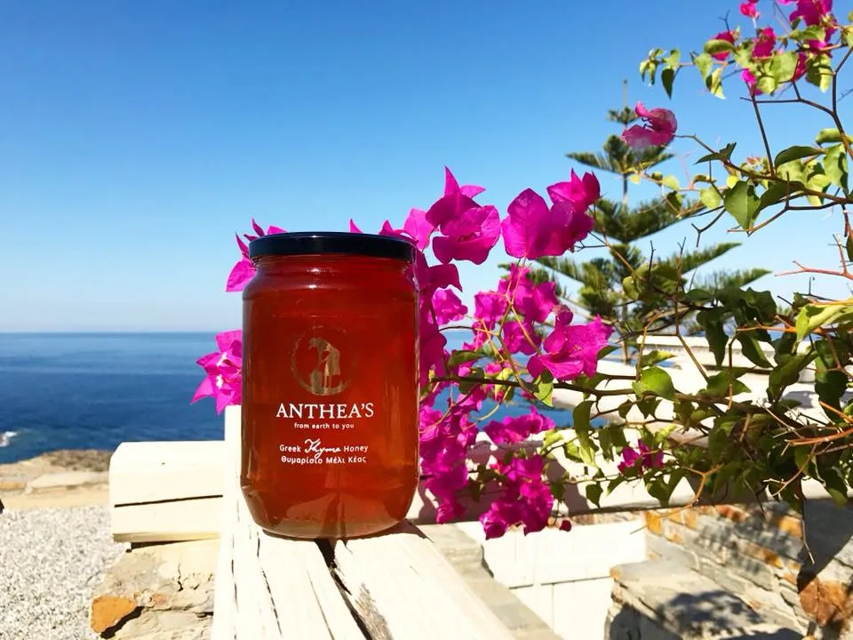 H Anthea’s είναι μια οικογενειακή επιχείρηση που εδρεύει στο όμορφο κυκλαδίτικο νησί της Κέας. Όλα τα φυσικά προϊόντα της Anthea’s προέρχονται από πρακτικές και καλλιέργειες που γίνονται σύμφωνα με τους νόμους της φύσης, με αγάπη και σεβασμό προς αυτήν! Τα βιολογικά μας φραγκόσυκα και αμύγδαλα που βρίσκονται στα κτήματα μας μεγαλώνουν φυσικά, χωρίς την χρήση φαρμάκων ή ορμονών. Το έδαφος και τα νερά έχουν εξεταστεί προσεκτικά, είναι ελευθέρα από χημικά κατάλοιπα, και δεν αποτελούν κίνδυνο μόλυνσης για τις καλλιέργειες μας. Το αγνό ακατέργαστο θυμαρίσιο μέλι μας παράγεται στην περιοχή Σπαθί, που ήταν από την αρχαιότητα, ένα από τα κέντρα μελισσοκομίας στο Αιγαίο! Με σεβασμό στο πλούσιο οικοσύστημα της νήσου και στους εποχιακούς κύκλους της φύσης, παρακολουθούμε τα μελίσσια μας καθ’ όλη την διάρκεια του χρόνου. Παράγουμε και συλλέγουμε το μέλι μας με υπευθυνότητα και συνεχή ενημέρωση στις πρακτικές της ορθής οικολογικής μελισσοκομίας, χωρίς την χρήση φαρμάκων ή βλαβερών ουσιών. Κατευθείαν, με άθερμη επεξεργασία, το μέλι εξάγεται χωρίς περαιτέρω επεξεργασία και τυποποιείται στη σύγχρονη πιστοποιημένη με ISO 22000:2005 μελισσοκομική μας μονάδα, εφαρμόζοντας τους αυστηρότερους κανόνες ασφάλειας και υγιεινής. Έτσι μπορούμε να εγγυηθούμε την άριστη ποιότητα του, που εμπεριέχει όλα τα αρώματα του θυμαριού, μαζί με τις ανεκτίμητες θεραπευτικές και θρεπτικές ιδιότητες του μέχρι την τελευταία σταγόνα του βάζου!