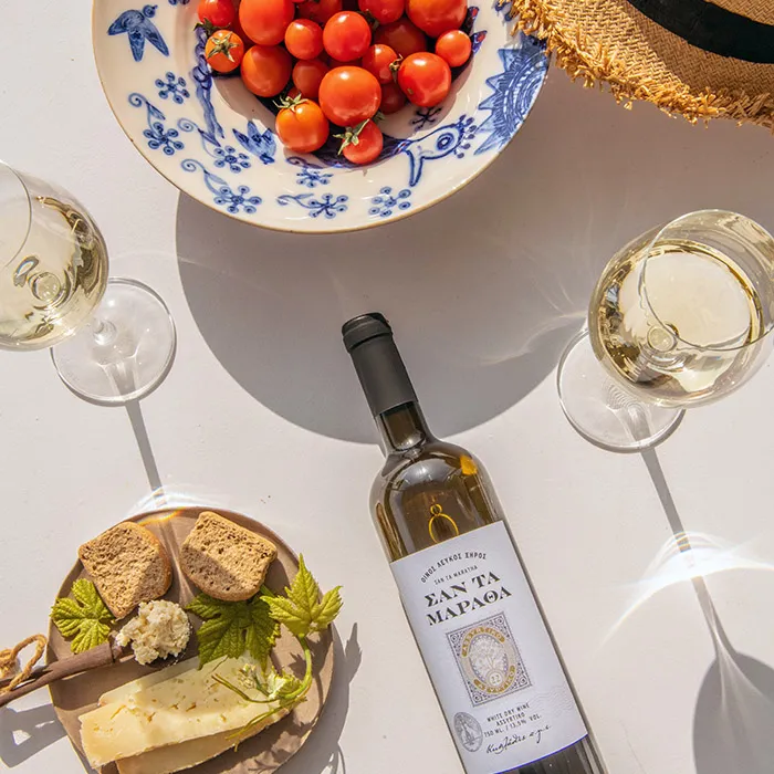 ΠΓΕ Κυκλάδες, οίνος λευκός ξηρός, Ασύρτικο Περιορισμένης παραγωγής, με όνομα εμπνευσμένο από τις αυτοφυείς μαραθιές που ξεφυτρώνουν παντού στη Σύρο....