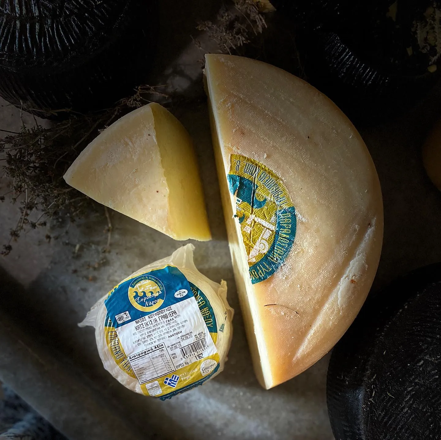 Από παστεριωμένο αιγοπρόβειο και αγελαδινό γάλα Νάξου. Ωριμάζει μέσα σε στάχτη. Με ιδιαίτερη πικάντικη σγεύση ιδανικό για ποικιλίες. Συσκευασία: Κεφάλι...