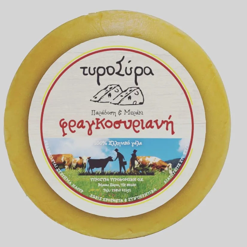 Η φραγκοσυριανή, ένα πολύ ιδιαίτερο τυρί, κυρίως από αγελαδινό με προσθήκη ελάχιστου αιγοπρόβειου γάλακτος, το οποίο παράγεται σε περιορισμένες ποσότητες....