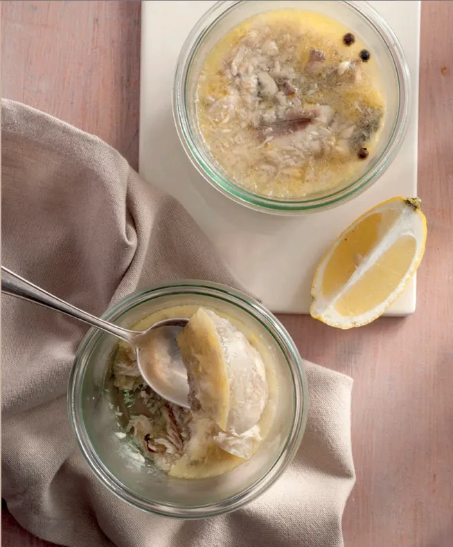 με 6 ποτήρια νερό, το ελαιόλαδο και το κρεμμύδι. Βράζουμε για 15 λεπτά, σε δυνατή φωτιά, με ανοιχτή κατσαρόλα, ξαφρίζοντας τακτικά, με τρυπητή κουτάλα. Απομακρύνουμε την κατσαρόλα από τη φωτιά, βγάζουμε προσεκτικά το ψάρι και σουρώνουμε τον ζωμό. Ξεκοκαλίζουμε πολύ προσεκτικά το ψάρι και βάζουμε τα καθαρά ψαχνά του πάλι στον ζωμό. Προσθέτουμε τον χυμό λεμονιού, το ξίδι, το πιπέρι, τη δάφνη και αλάτι, αν χρειάζεται. Βράζουμε ξανά το μείγμα, σε ανοιχτή κατσαρόλα και δυνατή φωτιά, μέχρι να μείνει η μισή ποσότητα υγρών.
