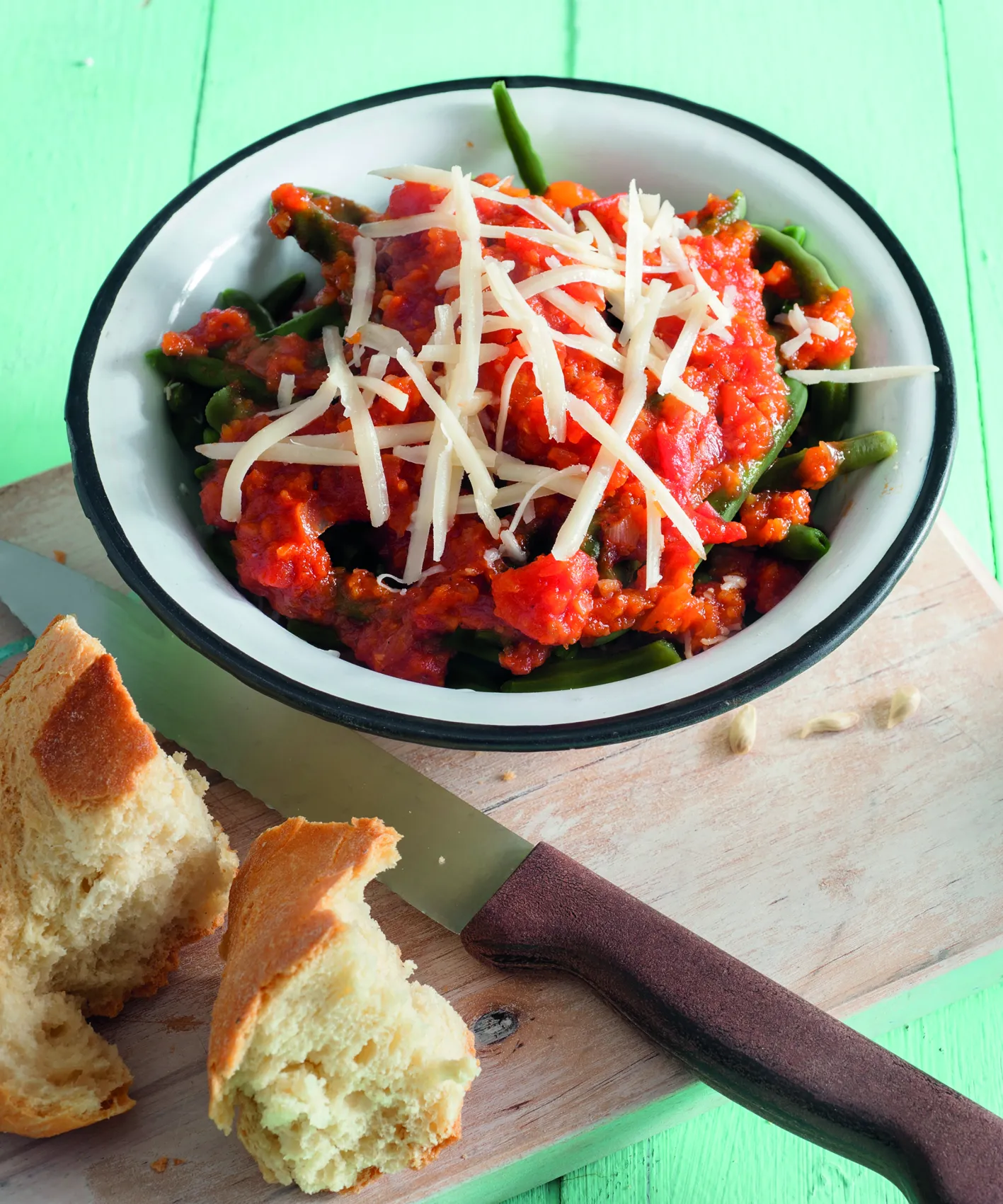 ΛΙΒΙΑ: Κόβουμε τις άκρες από τα φασολάκια κι αν χρειάζεται τραβάμε τις ίνες από τα πλαϊνά. Τα βράζουμε σε αλατισμένο νερό, τόσο όσο να μείνουν τραγανά, αλλά όχι ωμά. Επειδή συνήθως είναι πολύ τρυφερά, είναι ζήτημα λίγων λεπτών να παραβράσουν. Τα σουρώνουμε και τα μεταφέρουμε σε πιατέλα. Τα περιχύνουμε με βούτυρο ή λίγο ελαιόλαδο και τα ανακατεύουμε. Ρίχνουμε το τυρί, ανακατεύουμε και από πάνω απλώνουμε τη σάλτσα και λίγο τυρί ακόμη. Σερβίρονται ζεστά ή χλιαρά.